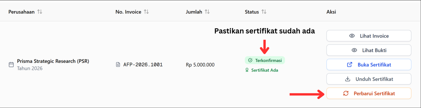 1. Revisi Invoice & Sertifikat (Self-Service)