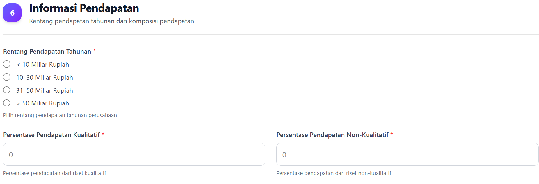 - Deskripsi: Pilih rentang pendapatan tahunan perusahaan