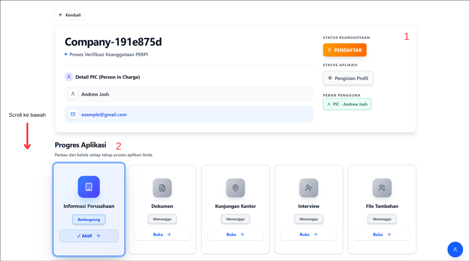 Profil perusahaan adalah informasi lengkap tentang perusahaan Anda yang akan direview oleh tim PERPI. Informasi ini mencakup: