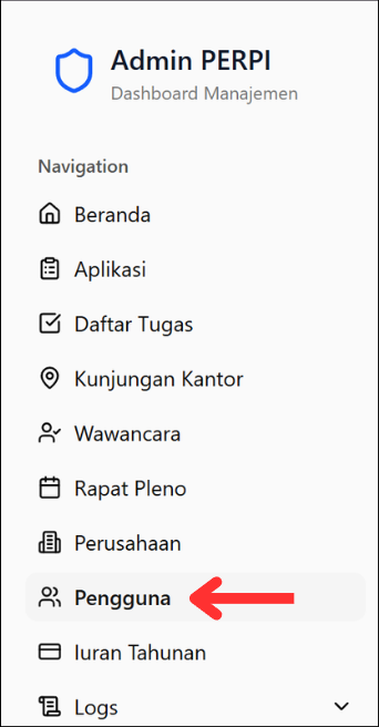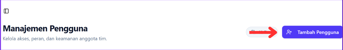 Untuk memulai, navigasikan ke menu Pengguna pada sidebar di sisi kiri layar. Setelah berada di halaman Manajemen Pengguna, klik tombol Tambah Pengguna yang berada di pojok kanan atas.