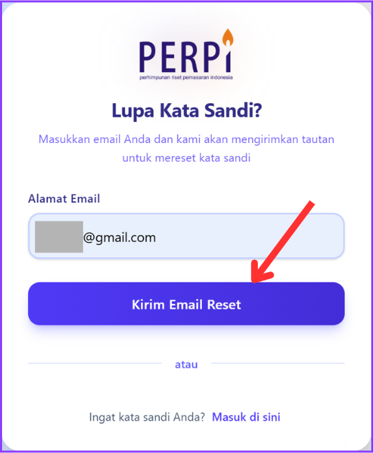 - Klik "Kirim Email Reset": Sistem akan mengirim link reset