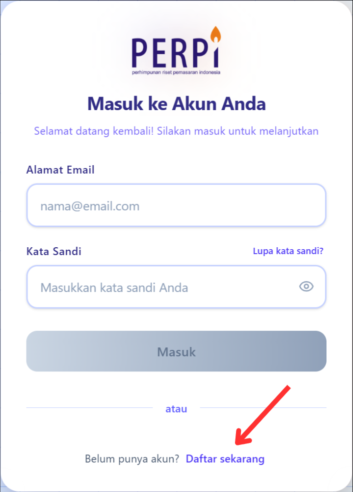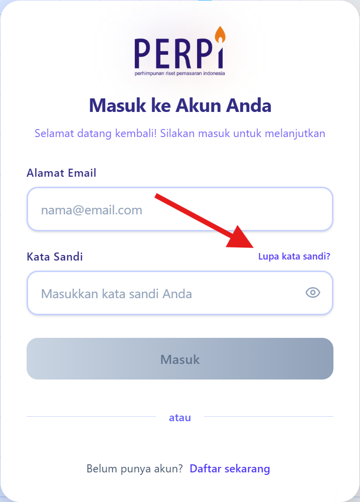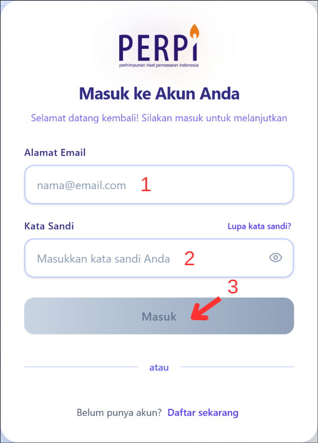- Atau akses langsung melalui URL: https://member.perpi.id/auth/login
