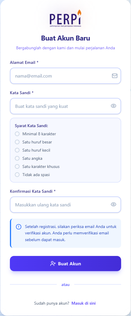 - Atau akses langsung melalui URL: https://member.perpi.id/auth/signup