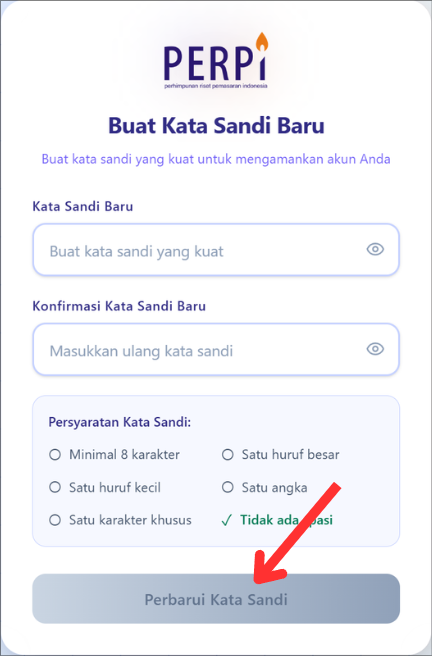 - Buat Password Baru: Anda akan diarahkan ke halaman update password